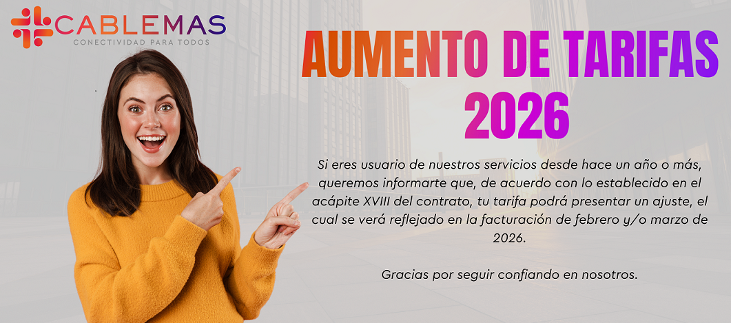 80 canales (televisión análoga) + Internet 5 Mbps (banda ancha) + WiFi